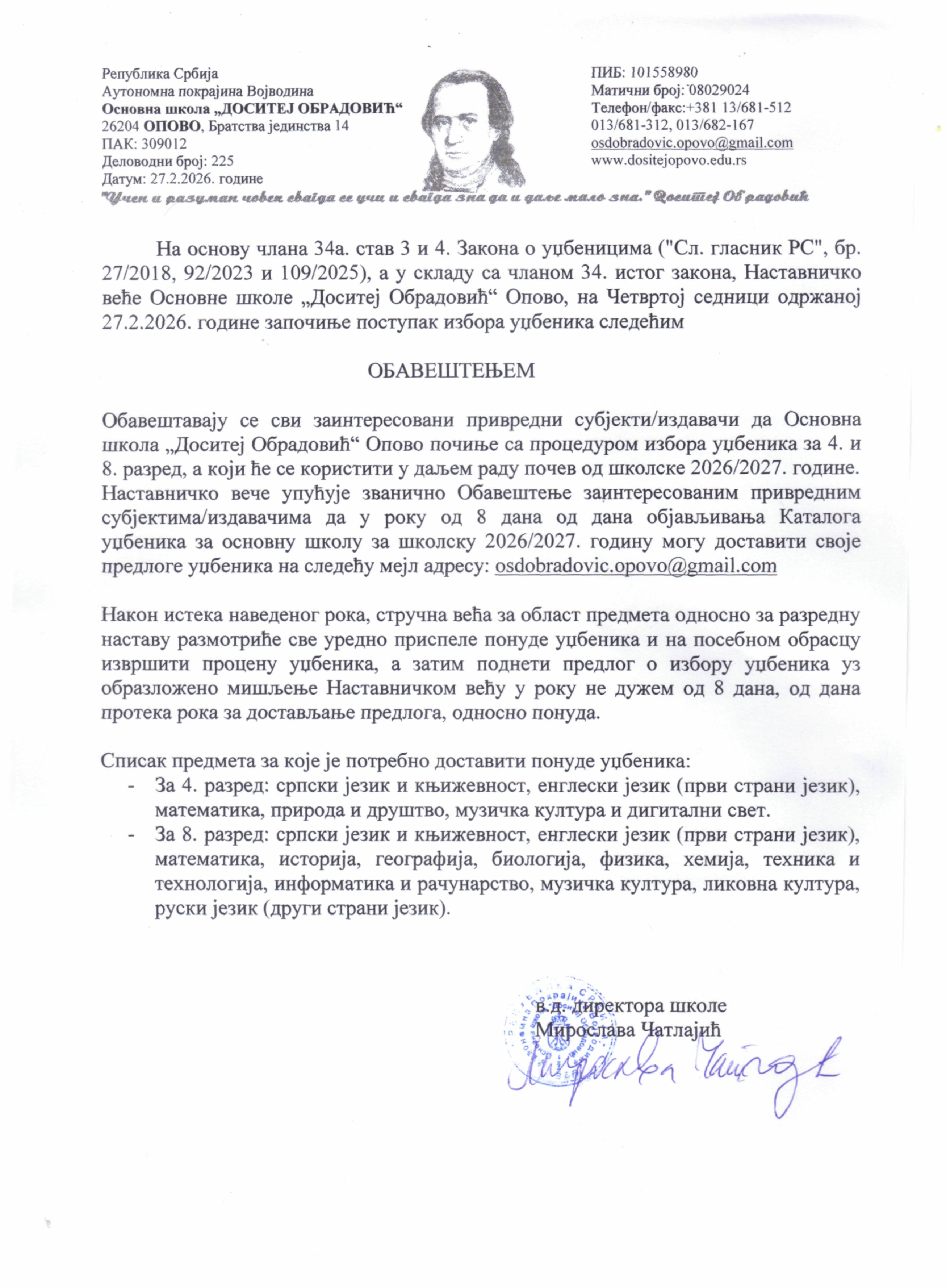 Распоред контролних и писмених задатака у друго полугодишту школске 2022/2023(измењен)